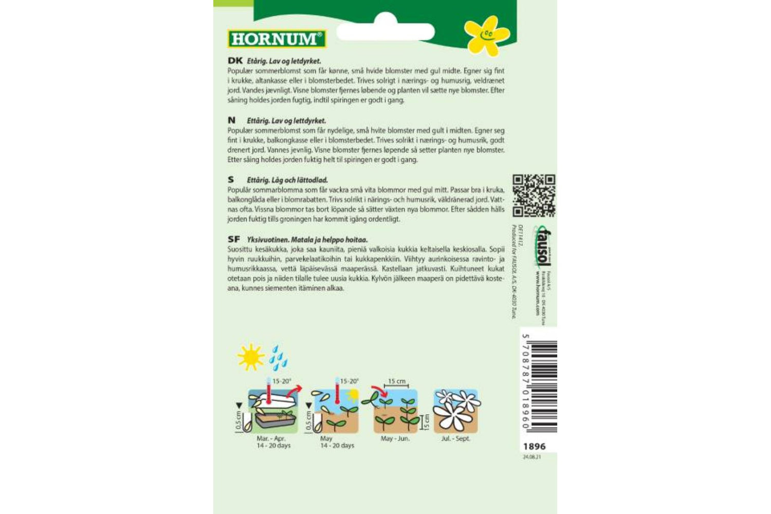 Ettårig. Denne lave og lettdyrkede sommerblomsten produserer vakre, små hvite blomster med en gul midte. Margeritt sommer er en populær plante som egner seg perfekt i krukker, altankasser eller blomsterbed. Den gir et friskt, sommerlig preg til enhver hage eller uteplass.