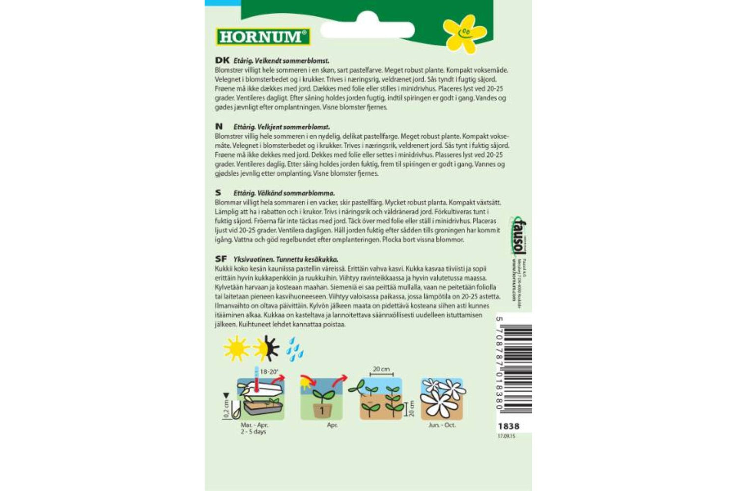Blomstrer fra juni til september, avhengig av såtidspunkt.