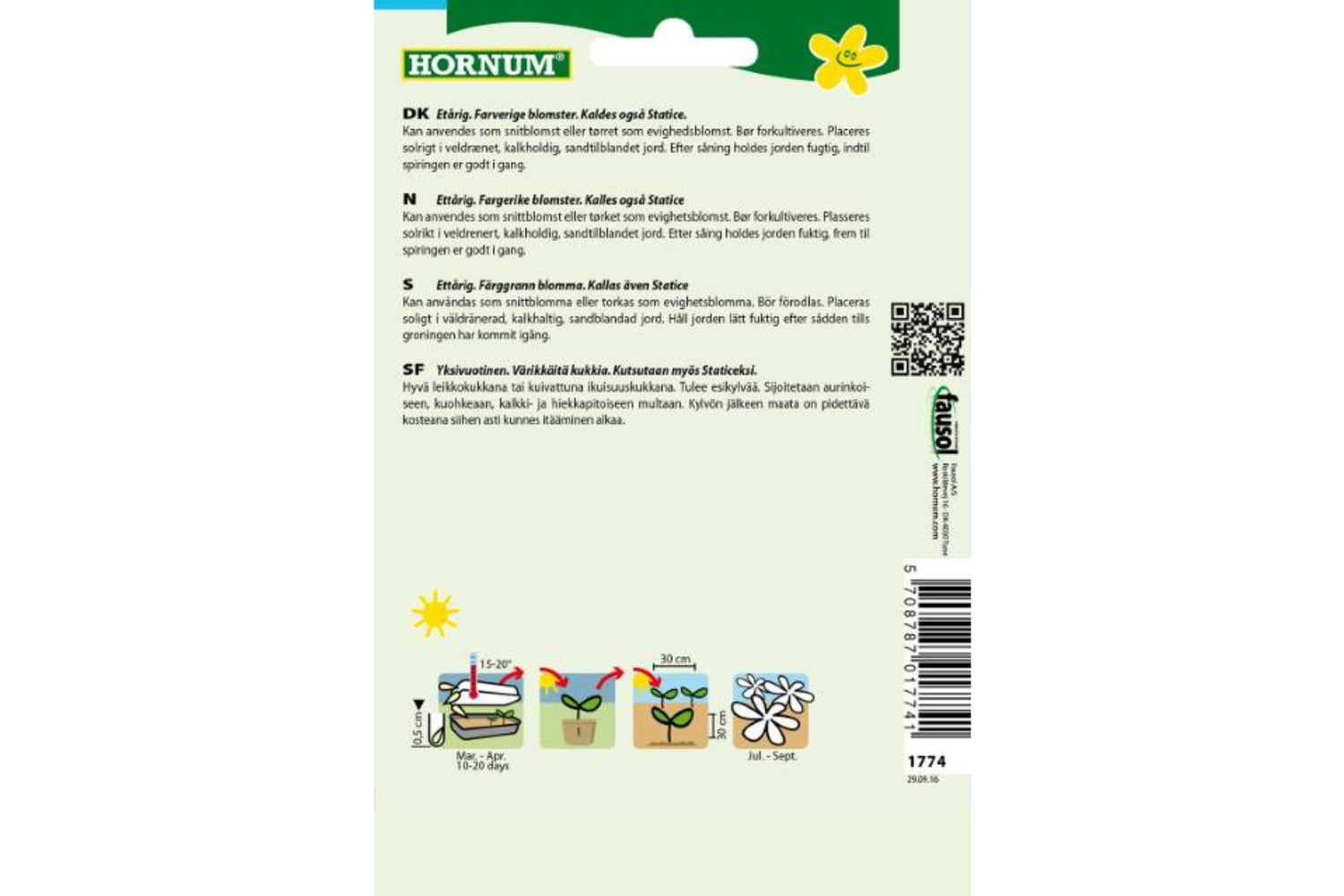 Ettårig. Vinget risp, også kjent som Statice, er en fargerik blomsterblanding som er perfekt til både snittblomster og som tørket evighetsblomst. Blomstene er holdbare og bevarer sin skjønnhet lenge etter tørking, noe som gjør dem ideelle for dekorasjon året rundt.