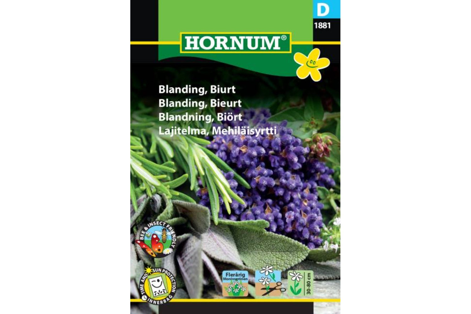 Flerårig. Bieurt er en velduftende blanding av krydderurter som ikke bare løfter smaken på mange retter, men også gir vakre blomster fulle av nektar, noe som gjør dem til en verdifull næringskilde for bier, sommerfugler og andre insekter. Denne blandingen er perfekt for å skape en dekorativ krydderurtspiral eller et duftende bed med flerårige urter som beriker både hagen og kjøkkenet.