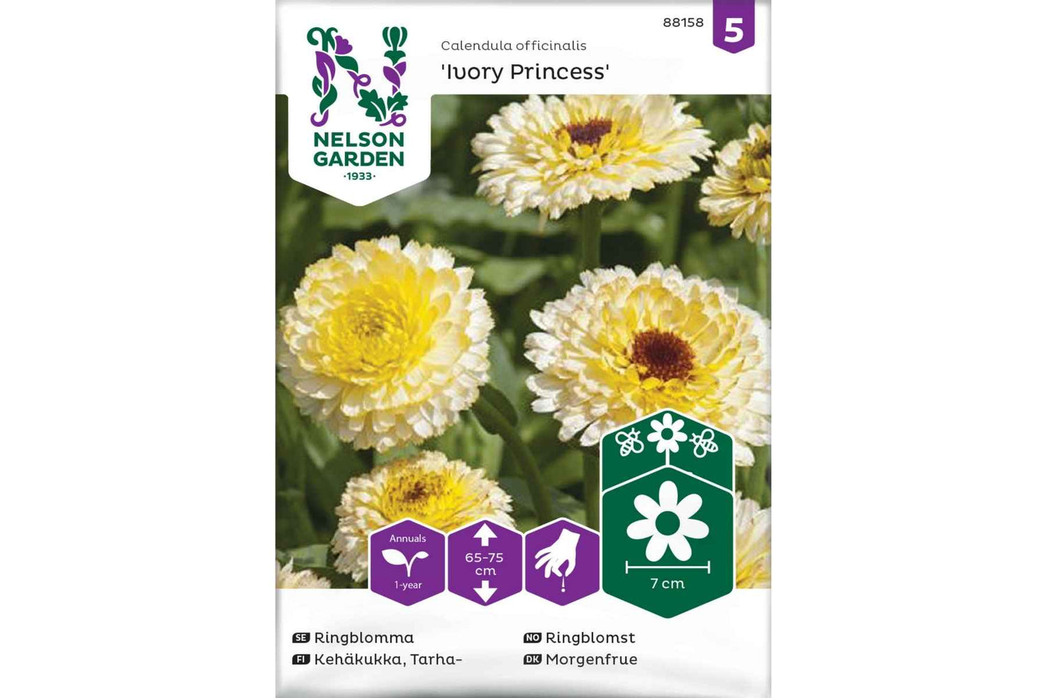Ivory Princess er en dobbel ringblomst med nydelige lysegule, nesten hvite toner. Blomstermidten er enten mørk eller kremfarget, noe som gir et elegant uttrykk. Kronbladene er spiselige og kan brukes som dekorasjon i salater. Planten trives best i næringsrik og veldrenert jord, men er ikke særlig kravstor og er lett å dyrke.