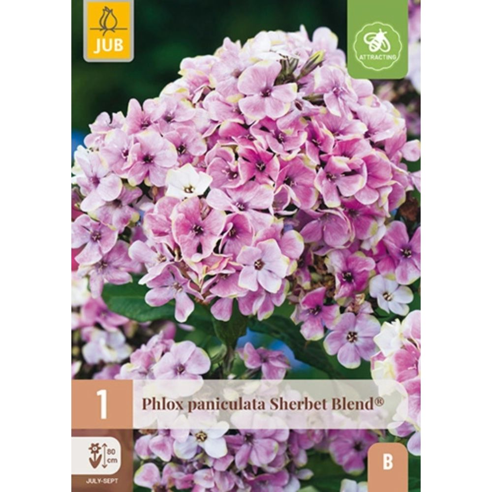 Floks ‘Sherbet Blend’ er en unik og moderne hagefloks med et friskt, tofarget uttrykk. Blomstene har myke rosa nyanser kombinert med limegrønne til grønnlige knopper og senter, noe som gir et lett, nesten pastellaktig preg i staudebedet. Sorten blomstrer rikt fra midtsommer til sensommer og har en behagelig, lett duft som tiltrekker bier og sommerfugler.