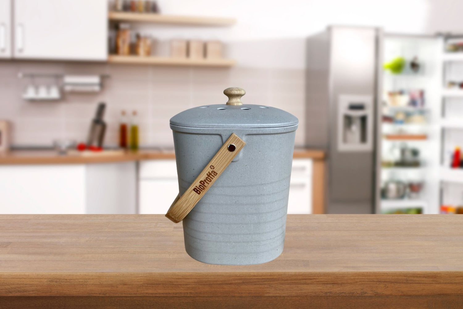 BioProffa bambus avfallsbeholder – grå 3,8 L er en miljøvennlig og praktisk løsning for deg som ønsker en luktfri og estetisk oppsamlingsbeholder til matavfall.