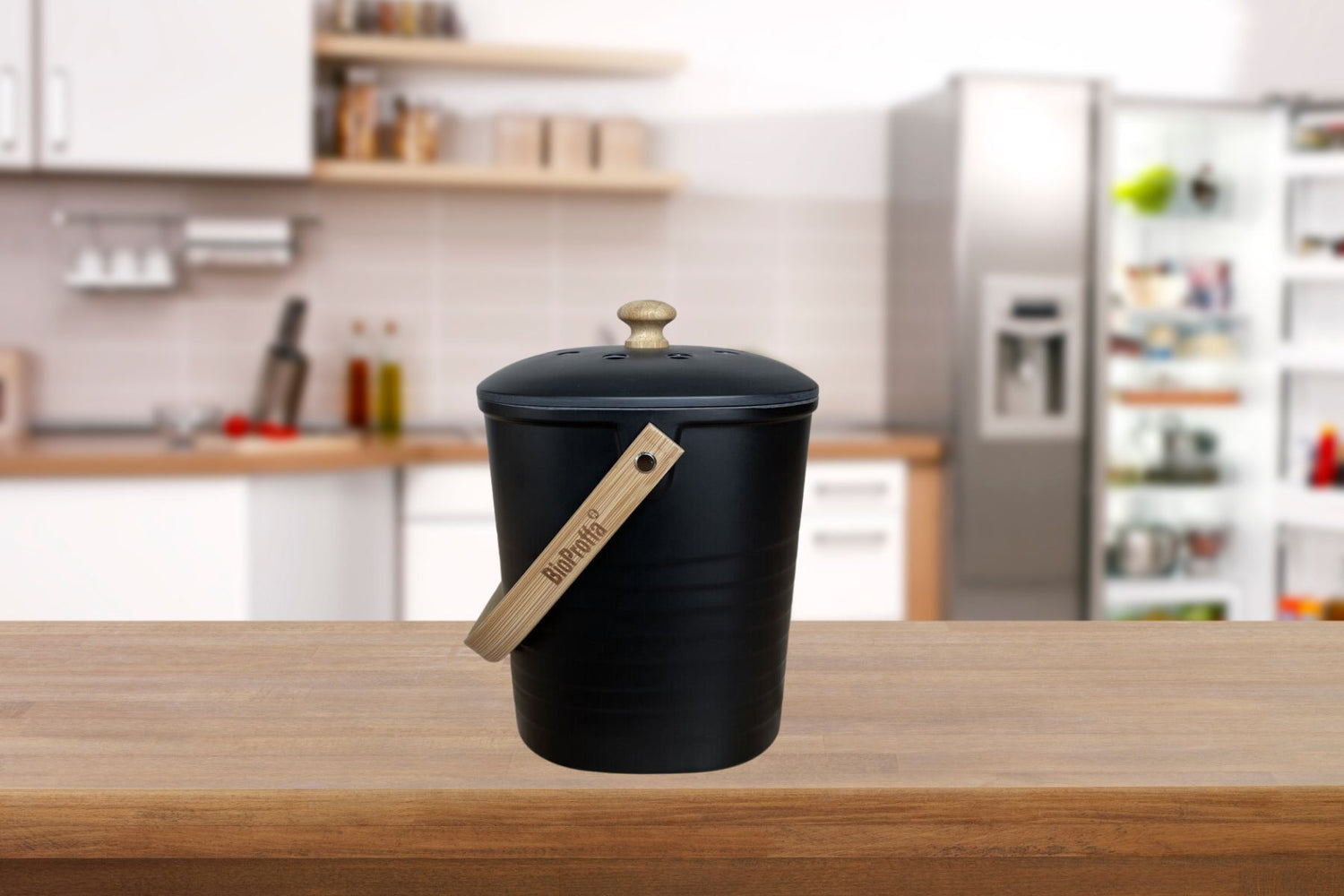BioProffa Bambus Avfallsbeholder – Svart 3,8 L er en miljøvennlig og praktisk løsning for deg som ønsker en luktfri og estetisk oppsamlingsbeholder til matavfall.
