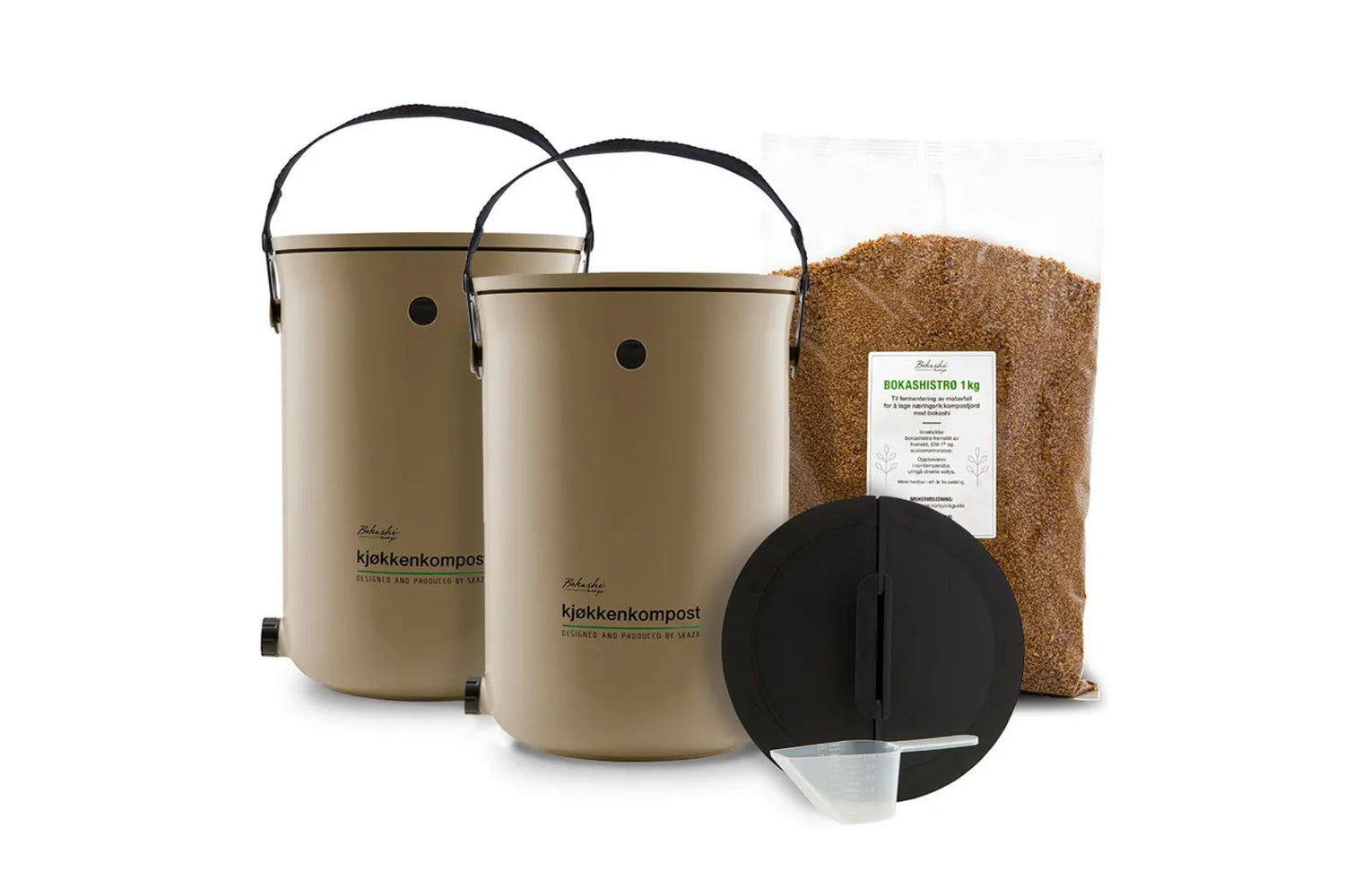• Inkludert: 2 bokashibøtter med dobbel konstruksjon, innerlokk med silikonkant, tappekopp og 1 kg bokashistrø