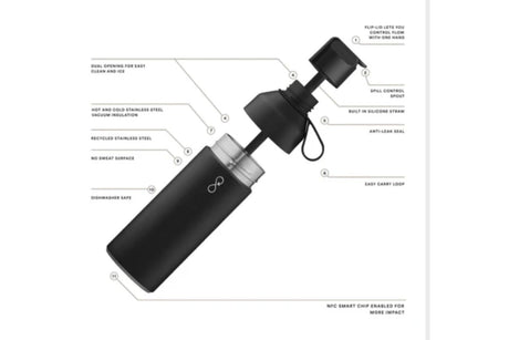 Ocean Bottle GO drikkeflaske 500 ml – Obsidian | Miljøvennlig gjenbruksflaske med sugerør