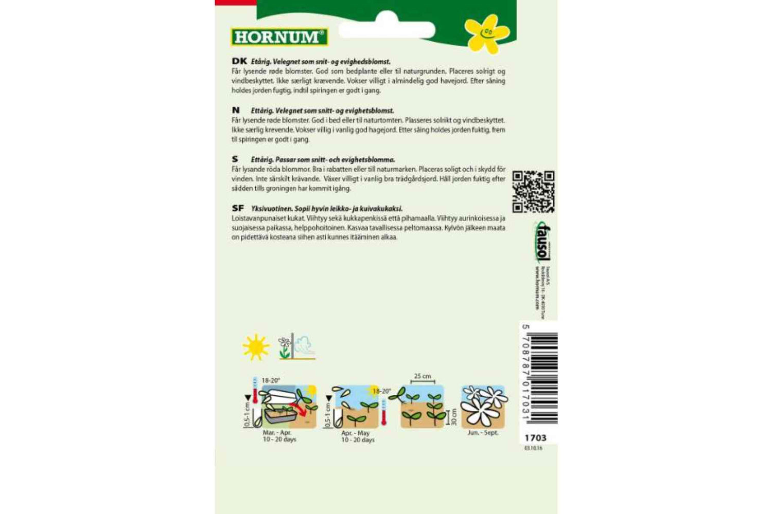 Ettårig. Velegnet som snitt- og evighetsblomst.