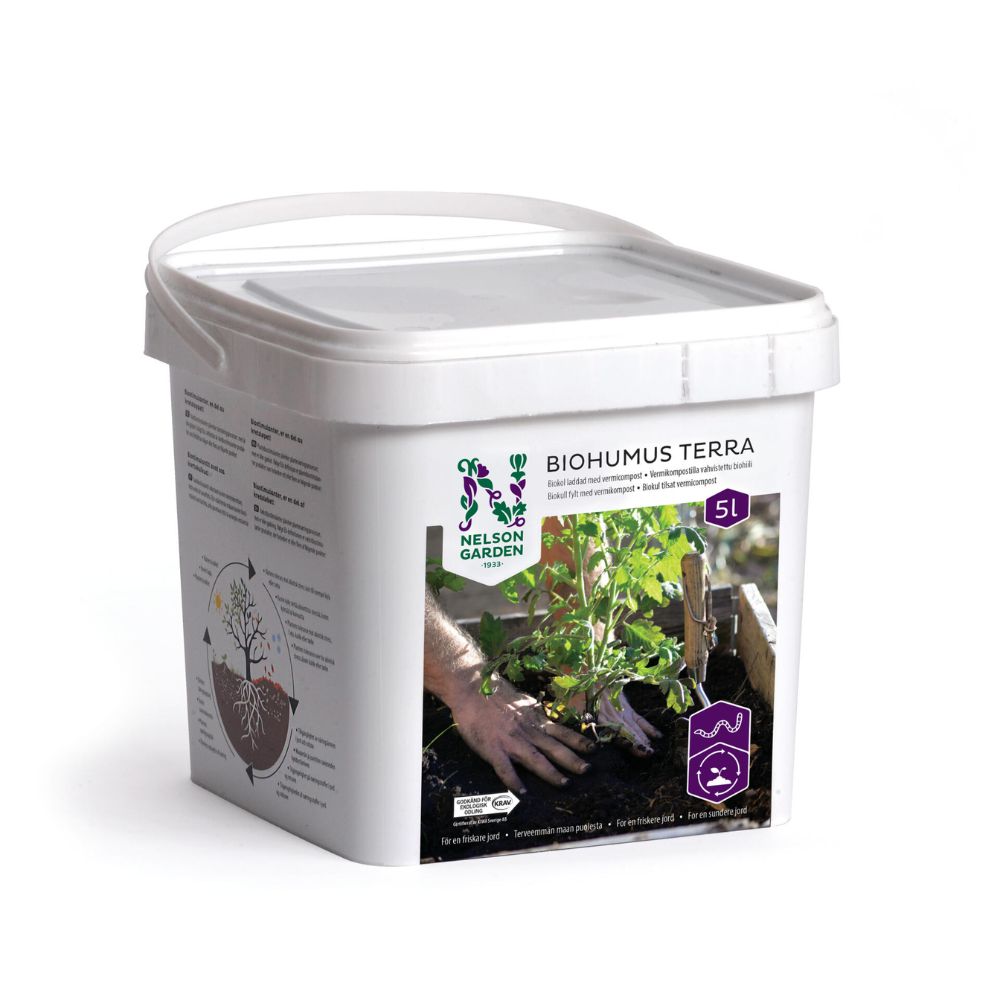 Biohumus Terra er en effektiv biostimulant som tilfører både karbon og aktivt mikroliv til utarmet jord. Kombinasjonen av vermikompost og biokarbon forbedrer jordstrukturen, gir flere luftporer og øker jordens evne til å holde på vann og næringsstoffer. Dette skaper et gunstig miljø for mikroorganismer og gir plantene bedre forutsetninger for å ta opp næring, utvikle sterke røtter og tåle stress som kulde, tørke, plantesykdommer og skadedyr. Biohumus Terra er duftfri, mild mot planterøtter og kan brukes gjennom hele plantens livssyklus. Godkjent for økologisk dyrking.