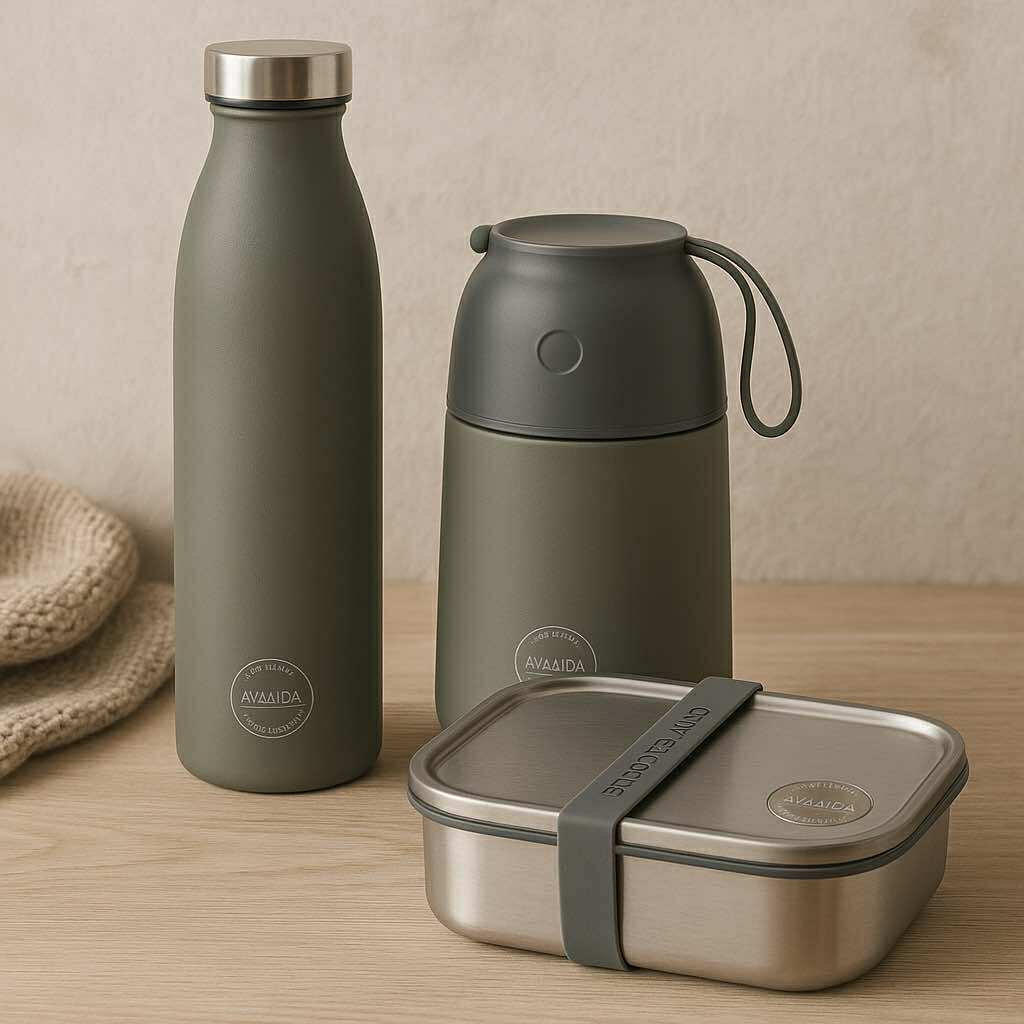 Dette elegante settet fra AYA&IDA består av tre produkter i den populære fargen Tropical Green, laget for deg som ønsker å ta med mat og drikke på en bærekraftig og praktisk måte.