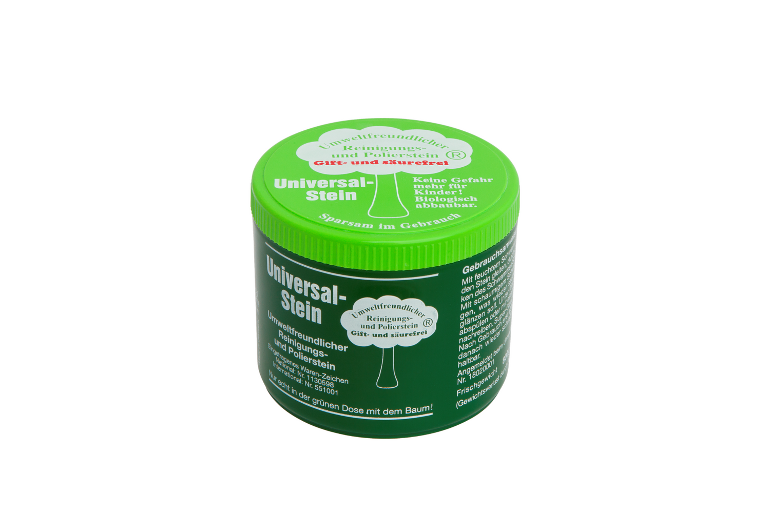 - Lang Varighet: Denne 900 g boksen er svært drøy i bruk – den kan vare i opptil to år for en husholdning på fire personer. Universal Stein har ubegrenset holdbarhet, noe som gjør den til et økonomisk og langvarig rengjøringsalternativ.