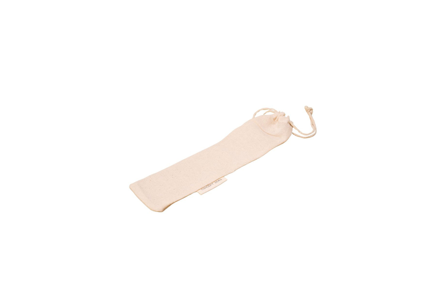 En enkel og smart bestikkpose i økologisk bomull med snøring. Perfekt til å samle og oppbevare bestikk, spisepinner, sugerør eller andre småting. Passer godt til tur, piknik eller som en miljøvennlig oppbevaringsløsning hjemme.
