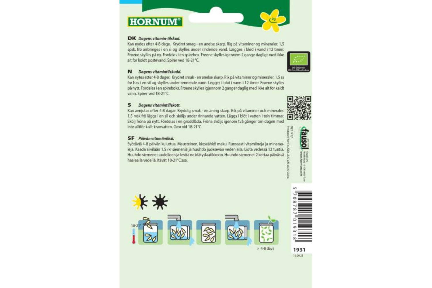 - Klar til bruk: Spirene kan høstes etter 4-8 dager, avhengig av ønsket størrelse.