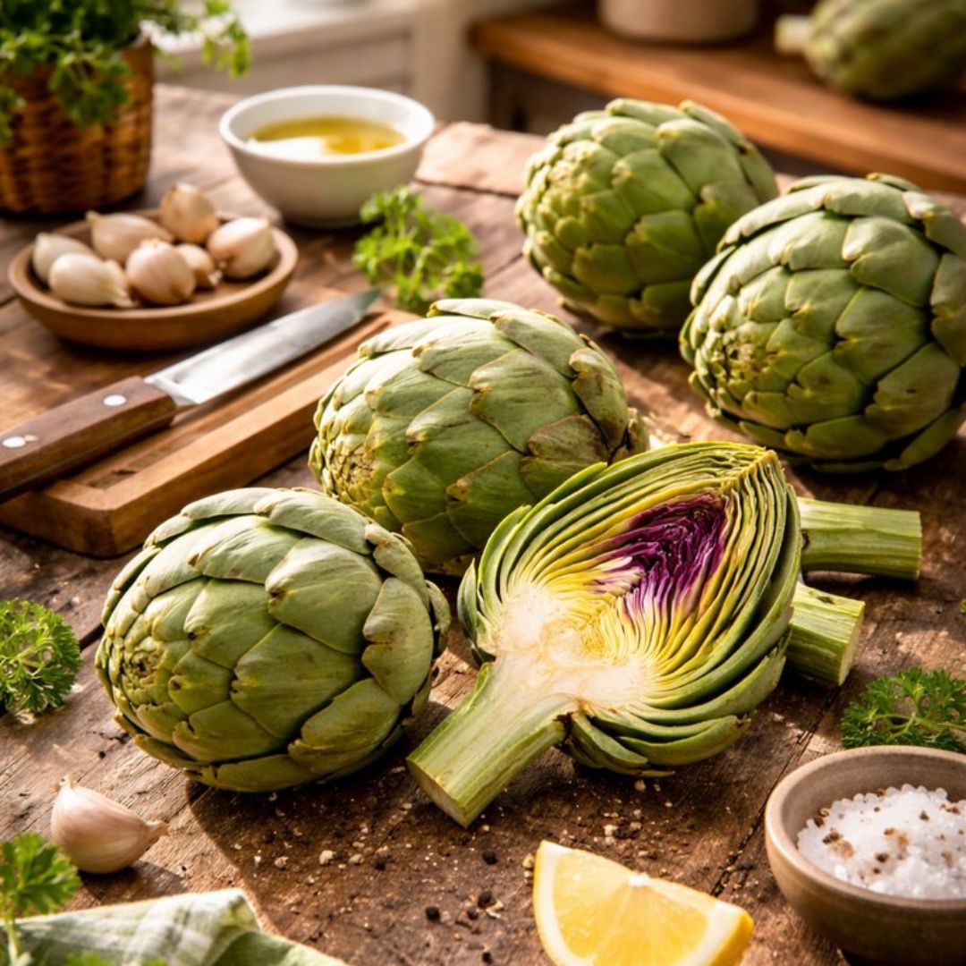 Artisjokk er en majestetisk og dekorativ grønnsak som kombinerer høy prydverdi med utsøkte, spiselige blomsterknopper. Planten danner store, sølvgrønne blader og kraftige stengler, og kan bli ca. 100–120 cm høy. Den er et blikkfang i kjøkkenhagen, samtidig som den gir delikate råvarer til sommerens og høstens måltider.