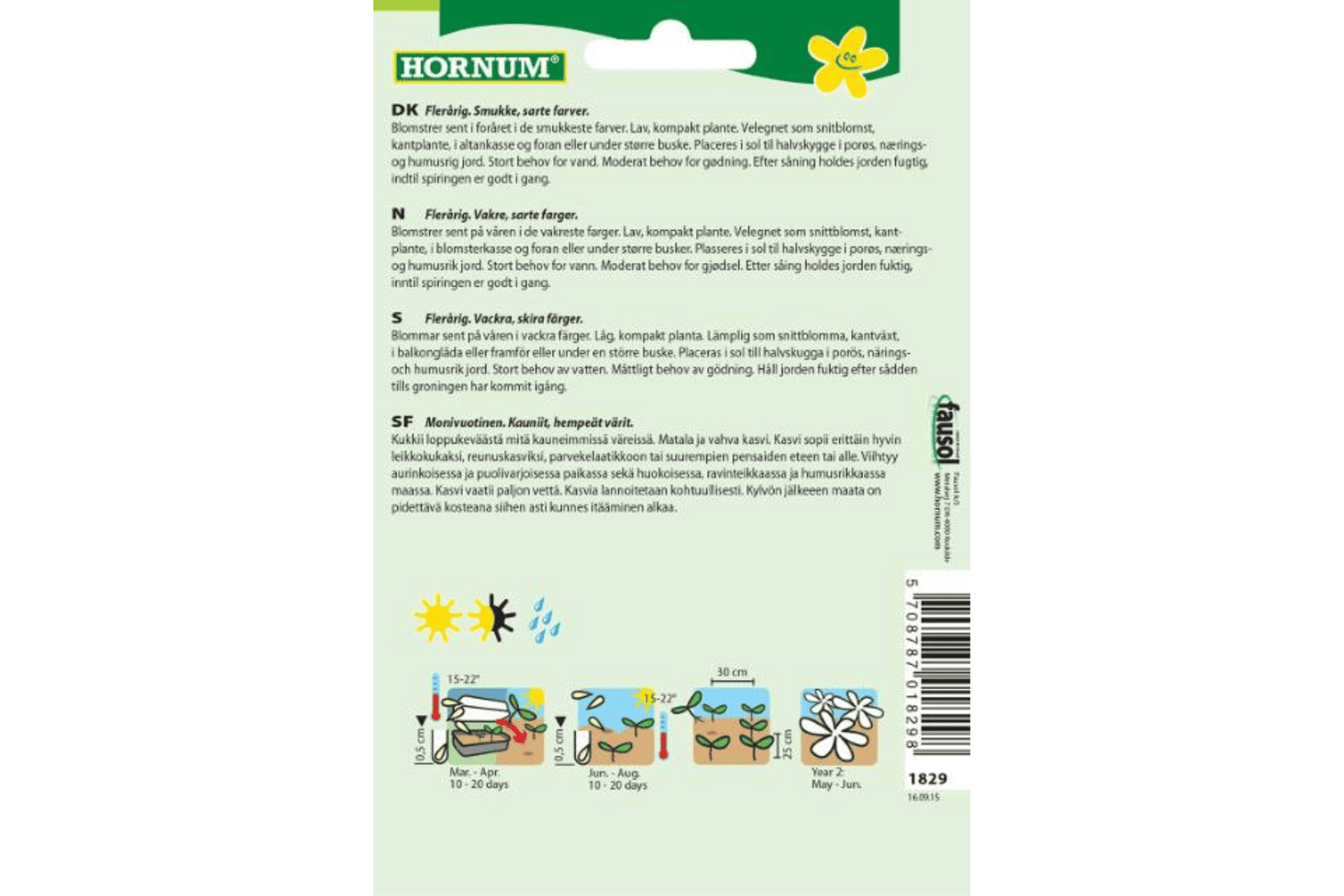 Velegnet som bed- og snittblomst (meget holdbar). Får duftende, fylte blomsterhoder i rosa, lilla, magenta og hvite nyanser. Noen har kun én farge og andre er tofargede. Plasseres solrikt og varmt i veldrenert, næringsrik jord. Frøene trykkes ganske lett ned i jorden. Etter såing holdes jorden fuktig, frem til spiringen er godt i gang. Hvis planten får lov til å bli stående etter avblomstring vil den kaste frø og blomstringen vil gjenta seg år etter år. Det er viktig at frøene ikke sås dypere enn angitt på posen. Hvis det sås for dypt vil dette medføre at spiringen ikke blir optimal.