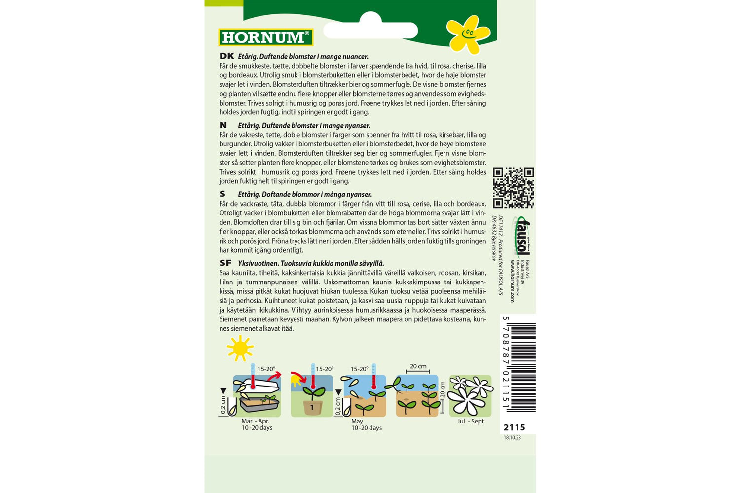 Ettårig. Lonely Queen er en vakker blanding av duftende enkeblomster i en rekke nydelige nyanser, fra hvit til rosa, kirsebær, lilla og burgunder. De tette, doble blomstene gir et storslått inntrykk i blomsterbedet eller som del av en blomsterbukett, der de høye stilkene svaier grasiøst i vinden. Denne sorten tiltrekker seg bier og sommerfugler, noe som gjør den både vakker og nyttig for hagen.