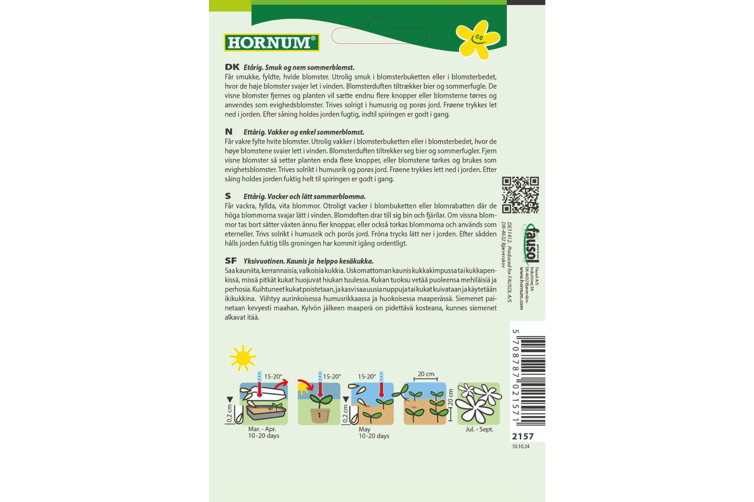 Skabiosa ‘Snowmaiden’ er en ettårig, vakker og elegant sommerblomst med fylte hvite blomster. De høye, lette stilkene gir en svevende effekt i blomsterbedet og er perfekte som snittblomst. De duftende blomstene tiltrekker seg bier og sommerfugler, og ved å fjerne visne blomster dannes stadig nye knopper. Kan også tørkes og brukes som evighetsblomst.