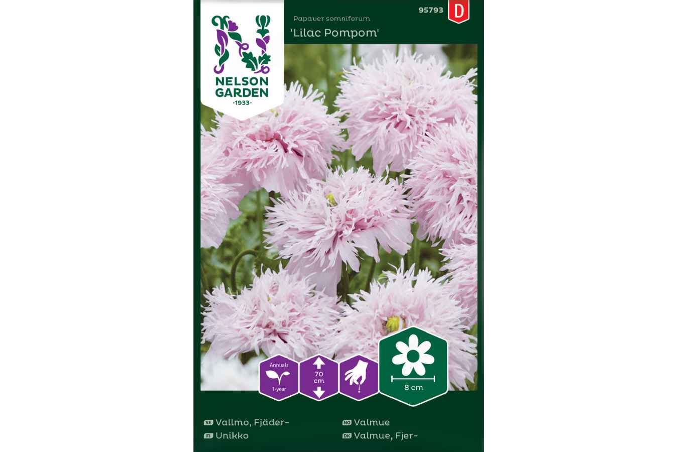 'Lilac Pompom' er en praktfull valmue med store, fylte blomster i en myk og delikat lys lilla farge. Denne sorten er et vakkert blikkfang i sommerblomstbedet og passer perfekt sammen med stauder. Med sin elegante form er den også ideell som snittblomst, og ved å så både høst og vår kan du nyte dens skjønnhet gjennom hele sesongen.